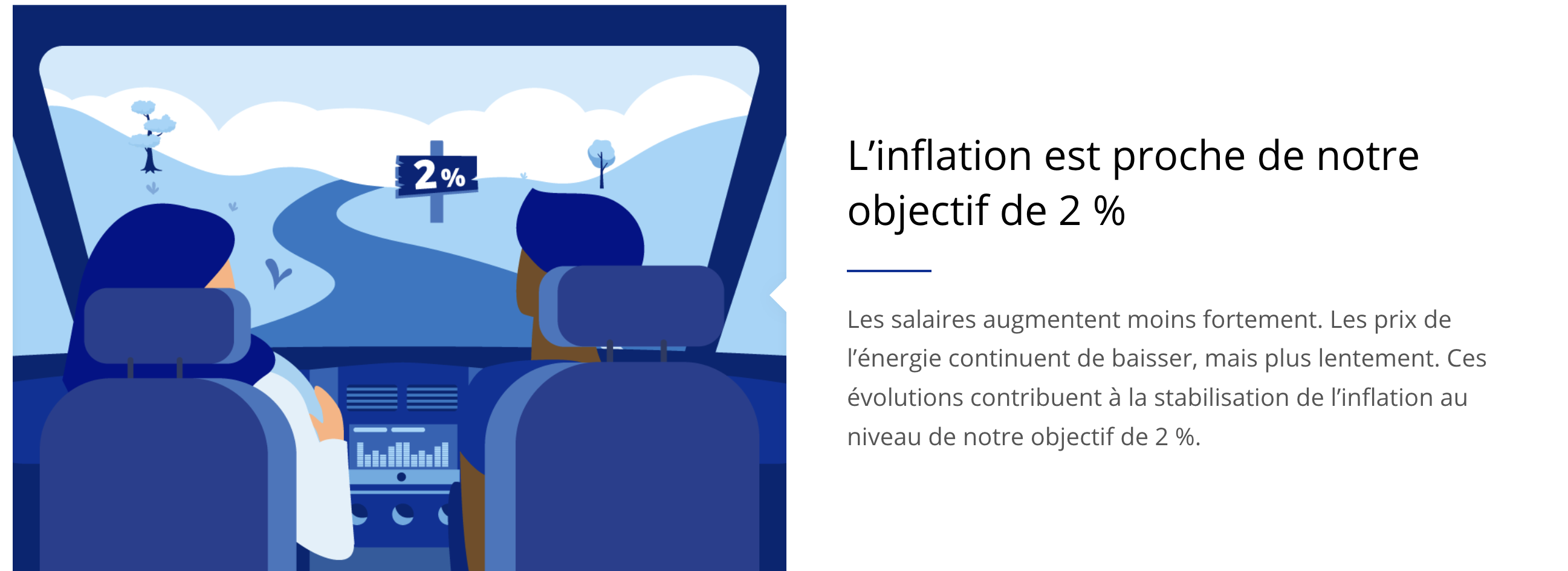 Le Conseil des gouverneurs est déterminé à assurer la stabilisation de l’inflation au niveau de son objectif de 2 % à moyen terme. Il suivra une approche s’appuyant sur les données pour définir, réunion par réunion, l’orientation appropriée de la politique monétaire. Plus particulièrement, les décisions du Conseil des gouverneurs relatives aux taux d’intérêt seront fondées sur son évaluation des perspectives d’inflation et des risques entourant ces perspectives, compte tenu des données économiques et financières disponibles, de la dynamique de l’inflation sous-jacente et de la force de la transmission de la politique monétaire. Le Conseil des gouverneurs ne s’engage pas à l’avance sur une trajectoire de taux particulière.