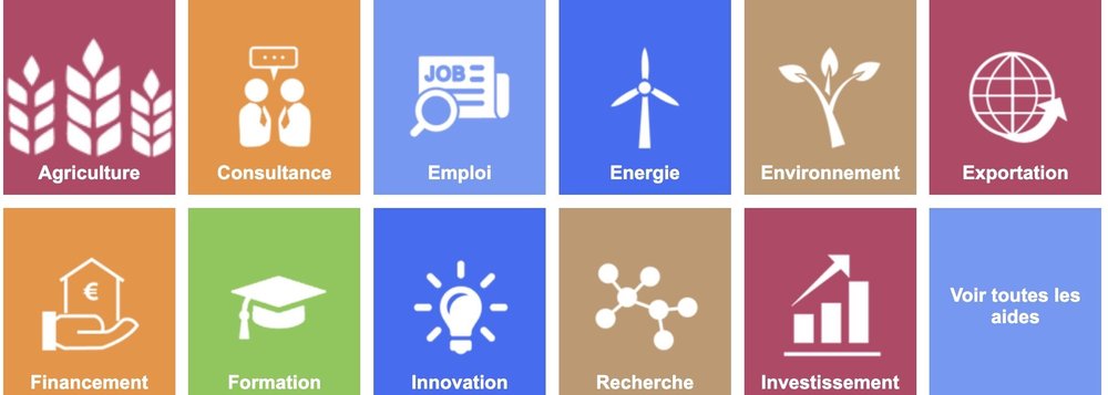 Il propose plus de 200 aides répertoriées couvrant 11 thématiques :