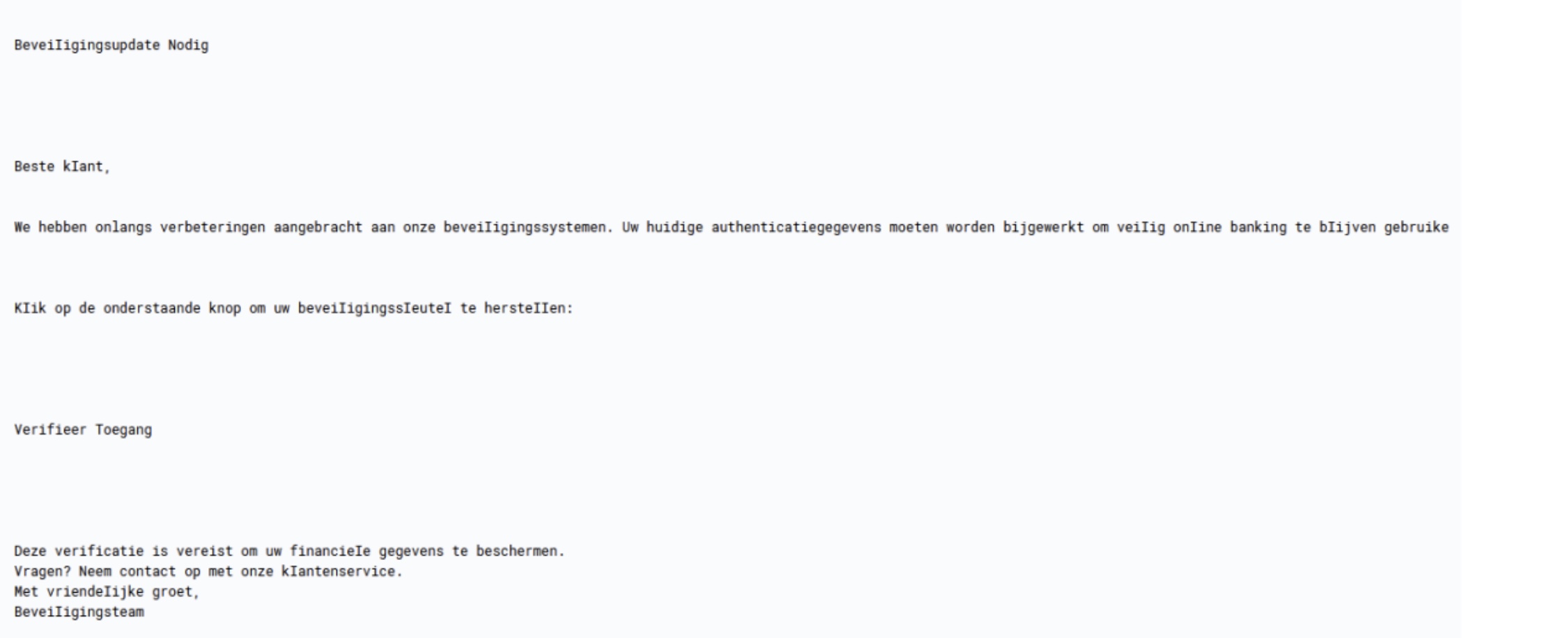 Deze week heeft SAFEONWEB meer dan 3000 meldingen gekregen over een nepmail waarin mensen wordt gevraagd hun gebruikersnaam of inloggegevens te updaten om toegang te krijgen tot hun bankrekening.
